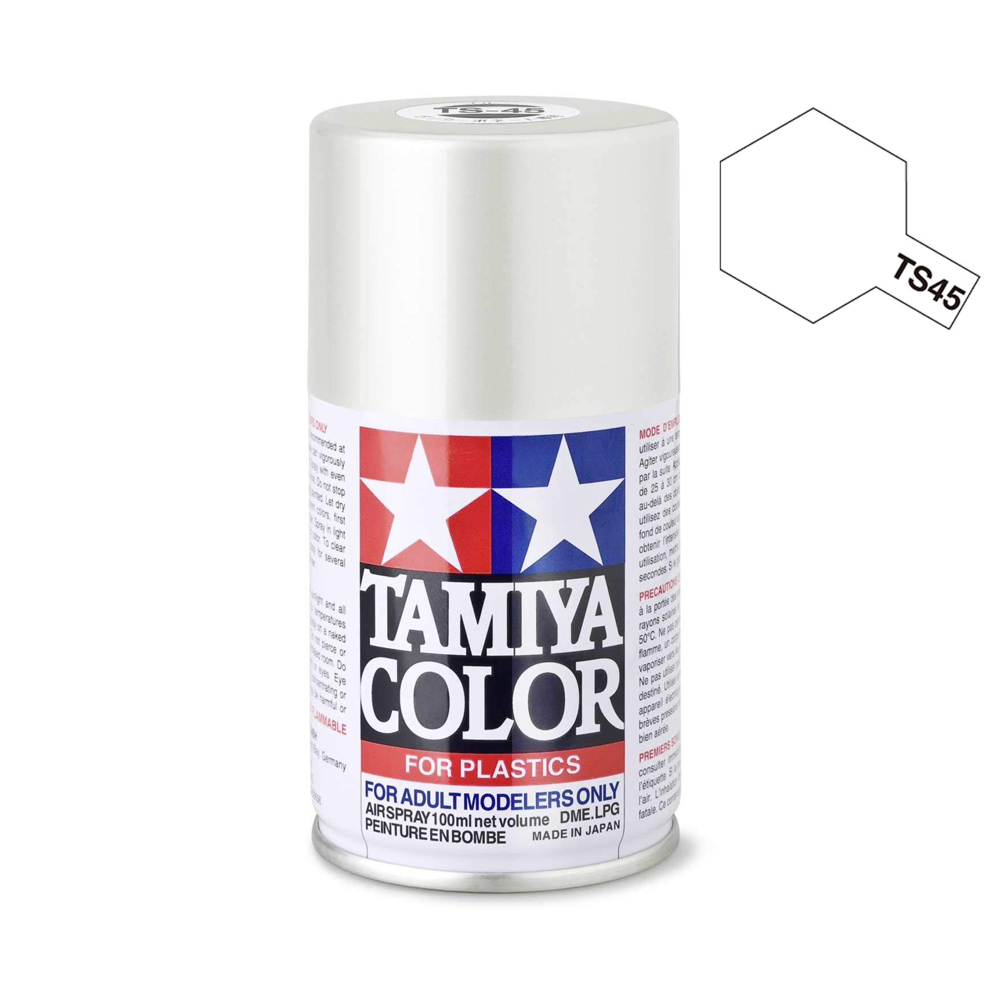 The Tamiya TS-45 Pearl White Spray Paint is a synthetic lacquer which can be used to paint plastic model kits. Each can contains 100ml of paint, and is not affected by acrylic or enamel paints, meaning further detailing is possible.